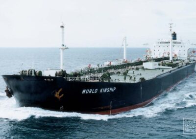 4.WORLD KINSHIP 1980 Το δεξαμενόπλοιο WORLD KINSHIP, 87.158 dwt, κατασκευάστηκε τον Δεκέμβριο του 1980 στα ναυπηγεία της Ιαπωνίας Ishikawajima-Harima Heavy Industries Co., Ltd., Aioi για την Blake Shipping Co. υπό σημαία Λιβερίας.