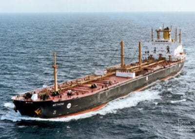 9.METHONI 1981 Το δεξαμενόπλοιο METHONI, 62.790 dwt, κατασκευάστηκε τον Μάιο του 1981 στα ναυπηγεία της Ιαπωνίας Oshima Zosen, Nagasaki για την Metromar Corporation υπό ελληνική σημαία.