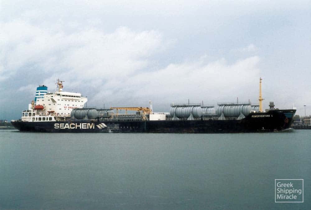 69.POWERVENTURE L 1987 Το chemical tanker POWERVENTURE L, 39.571 dwt, κατασκευάστηκε τον Ιούνιο του 1987 στα ναυπηγεία της Νοτίου Κορέας Hyundai Heavy Industries Co., Ltd., Ulsan για την La Fontana Sirena Ltd. υπό σημαία Λιβερίας.