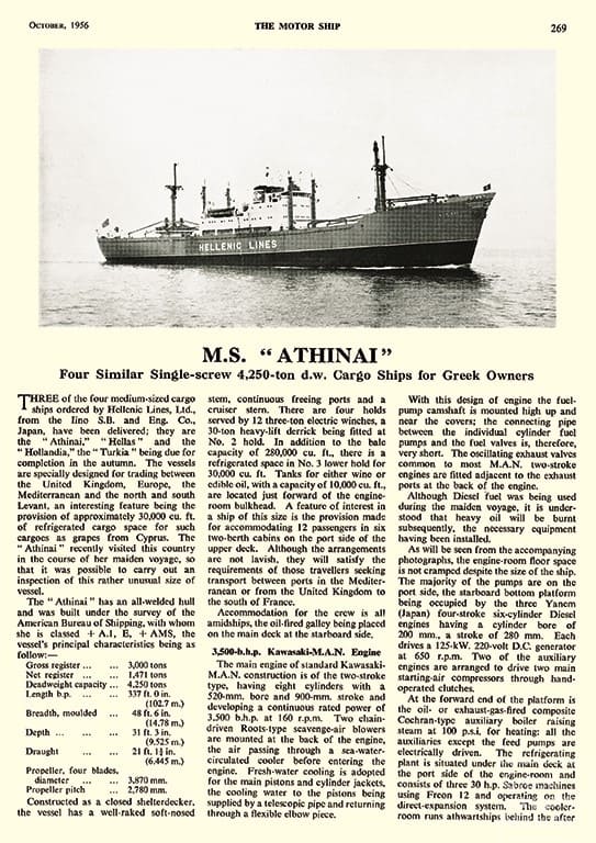 At the same time, owing to its founder’s desire to provide more and more quality services, in addition to acquiring other units from the second-hand market, the company implemented a shipbuilding program, a large one for its time. As part of this project, between 1956 and 1962, 13 newly built ships were delivered to Hellenic Lines by British, Japanese and West German shipyards.