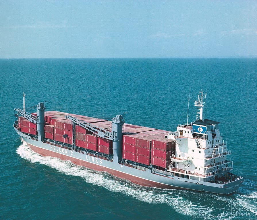 On 2 November 1979, the position of managing director of Hellenic Lines was assumed by the son of its founder, Gregory P. Callimanopulos, who had run an independent business, Trade & Transport Inc., since the mid-1960s. The new head of the company followed the strategy his father had set out, with the aim of modernising the fleet and gradually changing the company’s profile to one dealing exclusively in container ships. Accordingly, three vessels of this type were acquired from a French company, and an order for the construction of three such ships was also placed with Singapore shipyards. These were delivered in 1981 and 1982. An important step in completing the transformation of the fleet was also the conversion into full cellular containerships, at the Italian Cantieri Navali Riuniti SpA shipyards, of four of the six cargo ships which had been built in Finland in 1971. These were delivered in 1983.