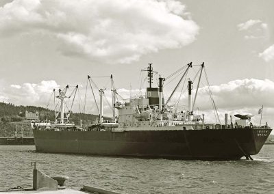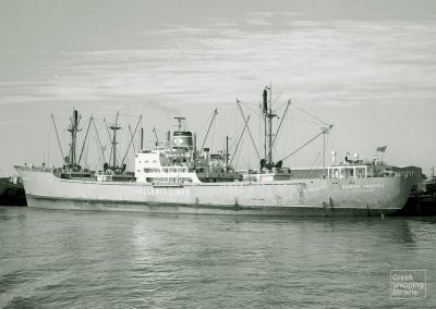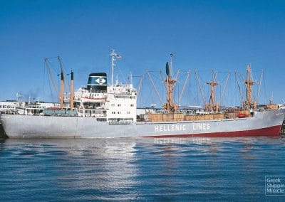 The cargo ship HELLENIC LEADER, 10,915 dwt, built in June 1962 by Kure Zosensho K.K., Kure, Japan, for Transpacific Carriers Corporation under Greek flag.