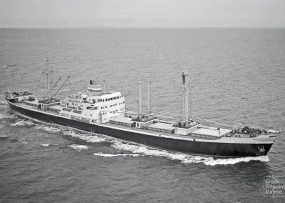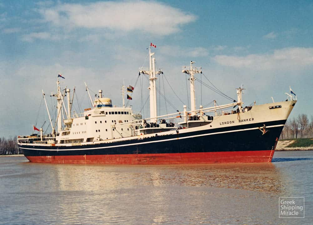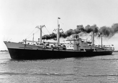 The cargo ship LONDON STATESMAN, 12,820 dwt, built in June 1963 by Uddevallavarvet Aktiebolag, Uddevalla, Sweden for London & Overseas Freighters Ltd. under British flag.