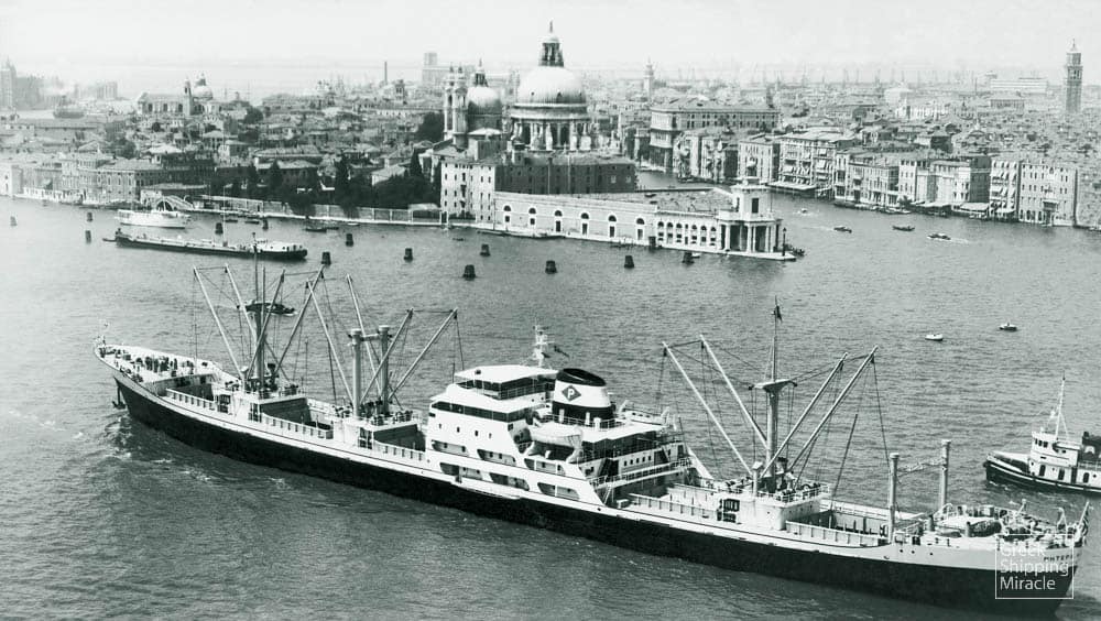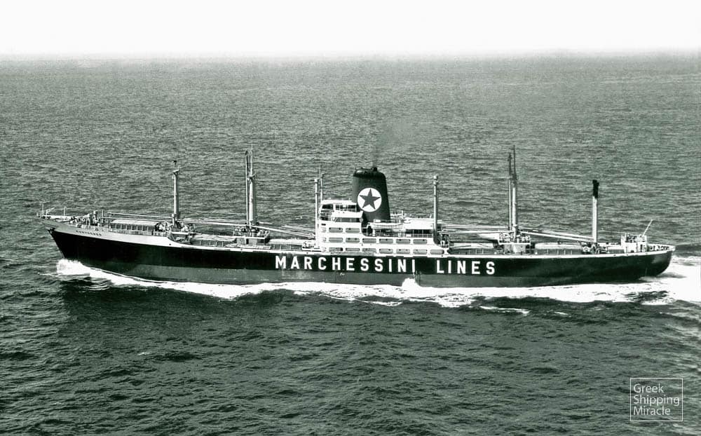 The cargo ship MARIA, 13,450 dwt, built in February 1962 by A.G. “Weser” Werk Seebeck, Bremerhaven, West Germany, for Compania “Ionian” de Navegacion S.A. under Greek flag.