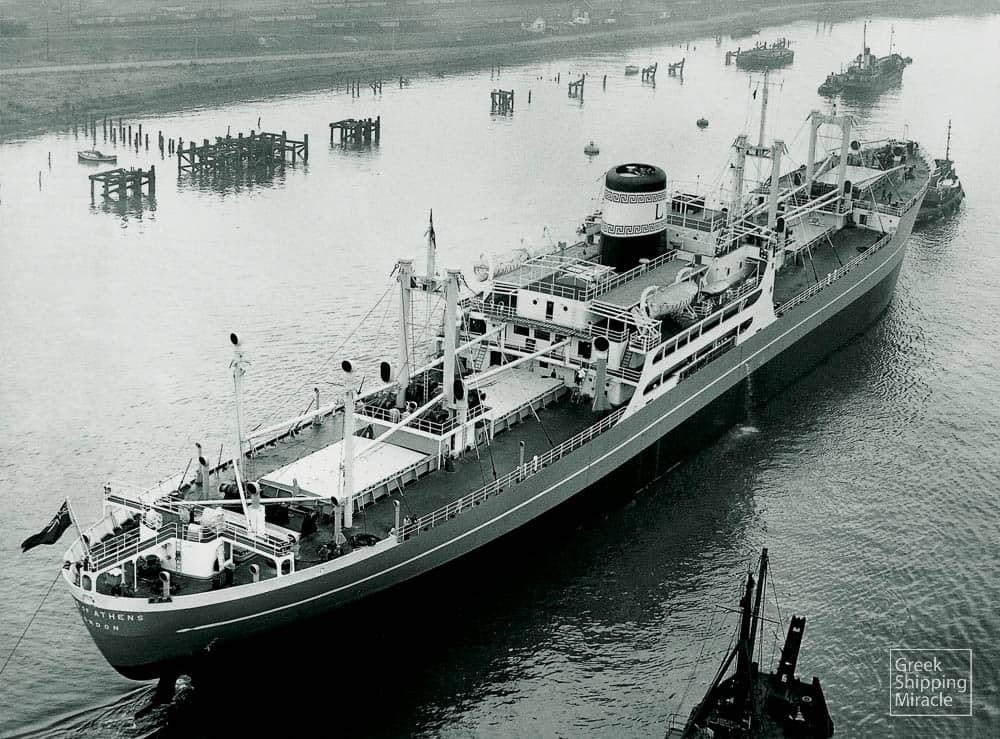 The cargo ship ANTONIOS COULOUTHROS, 15,500 dwt, built in August 1961 by Ateliers et Chantiers de Dunkerque et Bordeaux (France-Gironde), Bordeaux, France, for Sociedad Financiera Valenciana S.A. under Greek flag.