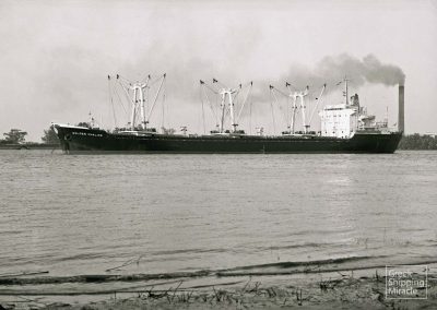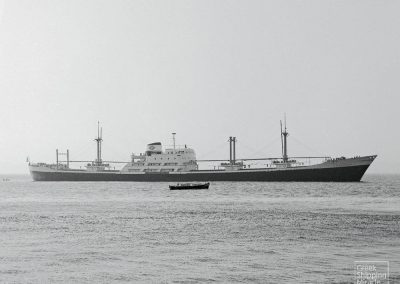 The cargo ship PEARL CLIPPER, 12,800 dwt, built in March 1960 by William Doxford & Sons Ltd., Sunderland, UK, for Monrovia Shipping Co. Ltd. of Liberia under Liberian flag.