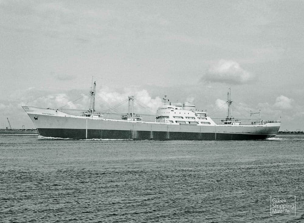 The cargo ship FRATERNITY, 14,549 dwt, built in August 1963 by Brodogradiliste “III Maj”, Rijeka, Yugoslavia, for Fraternity Shipping Corporation under Liberian flag.