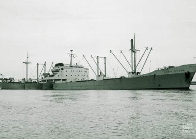 The Freedom-type cargo ship KHIAN ISLAND, 14,939 dwt, built in July 1969 by Ishikawajima-Harima Heavy Industries Co. Ltd., Tokyo, Japan for Tramp Tankers Enterprises S.A. under Greek flag.