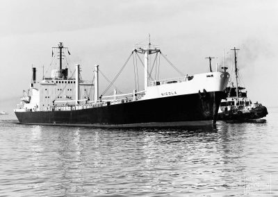 The SD-14-type cargo ship NICOLAOS D.L., 15.050 dwt, built in February 1969 by Austin & Pickersgill Ltd., Southwick, Sunderland, UK, for Ionmar Compania Naviera S.A. under Greek flag.