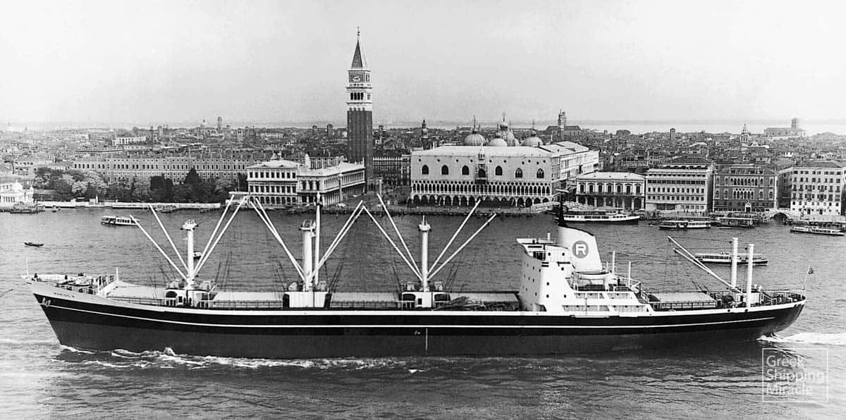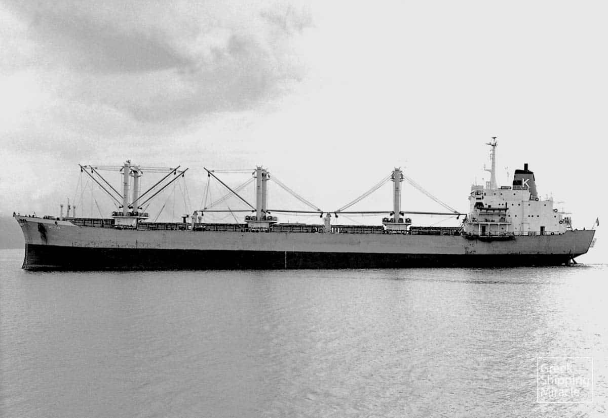 The cargo ship MITERA KALLIOPI, 14,742 dwt, built in March 1963 by Brodogradiliste “III Maj”, Rijeka, Yugoslavia, for Costa de Marfil Compania Naviera S.A. under Greek flag.