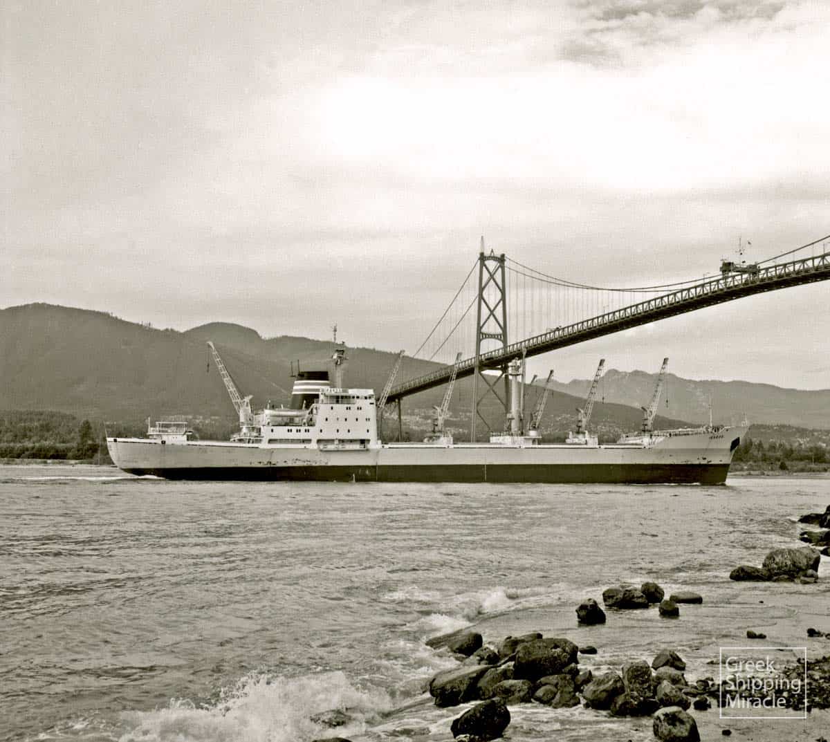 The cargo ship ARDAS, 4,695 dwt, built in November 1969 by Santierul Naval S.A., Galatz, Romania for Ardas Compania Naviera S.A. under Greek flag. (V.H. Young & L.A. Sawyer).