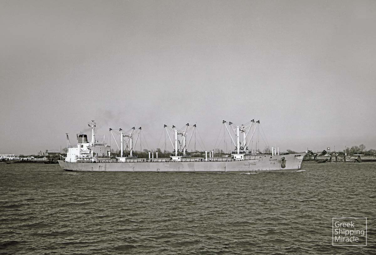The Freedom-type cargo ship PELEAS, 14,930 dwt, built in March 1969 by Ishikawajima-Harima Heavy Industries Co. Ltd., Nagoya, Japan, for Peleas Shipping Co. S.A. under Greek flag.