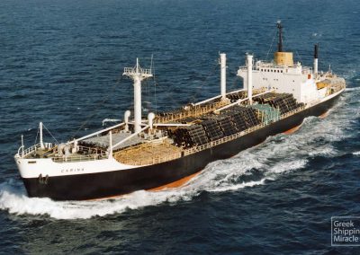 The SD-14-type cargo ship CARINA, 15,281 dwt, built in April 1969 by Austin & Pickersgill Ltd., Southwick, Sunderland, UK for Fairsail Carriers Corp. under Liberian flag.