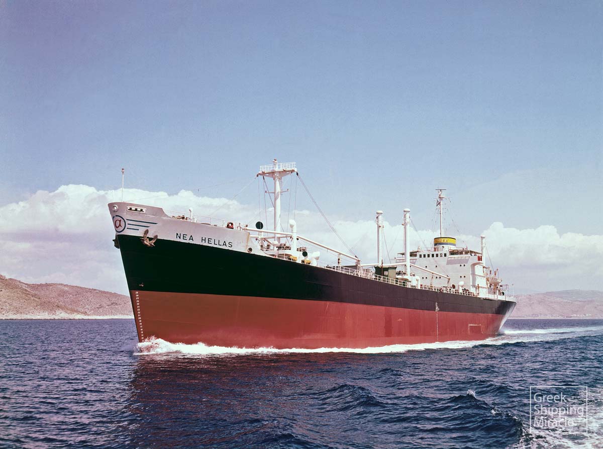 The SD-14-type cargo ship NEA HELLAS, 15,379 dwt, built in May 1969 by Hellenic Shipyards Co., Skaramanga, Greece for Nea Hellas Shipping Co. Ltd. under Cyprus flag.