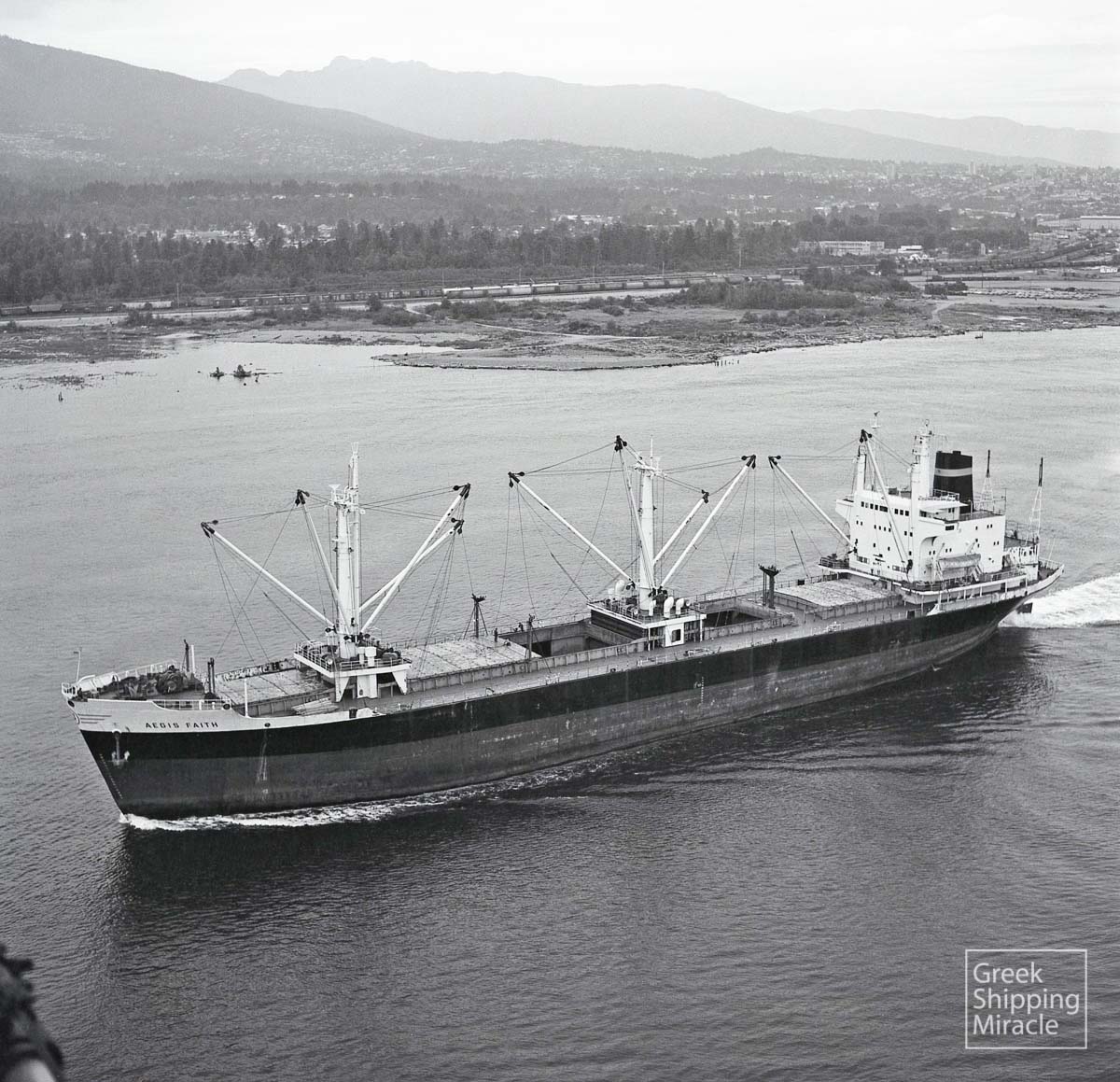 The cargo ship AEGIS FAITH, 15,005 dwt, built in June 1969 by Bremer Vulcan, Sciffbau & Maschinenfabrik, Bremen-Vegesack, West Germany for Speedwell Shipping Co. Ltd. under Greek flag.