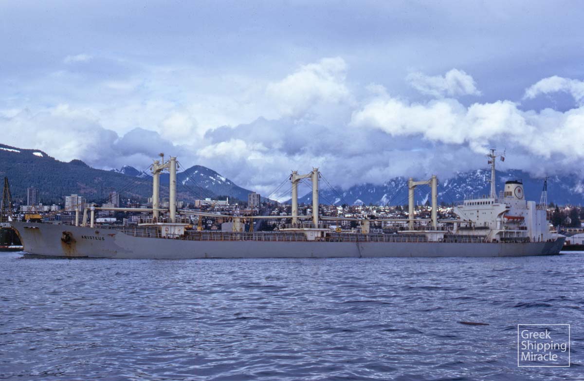 The Freedom-type cargo ship ARISTEUS, 14,935 dwt, built in September 1969 by Ishikawajima-Harima Heavy Industries Co. Ltd., Tokyo, Japan for Pindaros Shipping Co., S.A. under Greek flag.