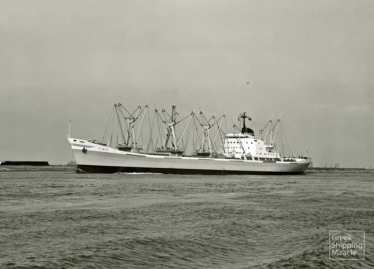 The cargo ship FINIX, 16,800 dwt, built in November 1969 by Doxford & Sunderland Shipbuilding & Engineering Co., Ltd., Sunderland, UK for Compania Naviera Santa Caterina S.A. under Greek flag.