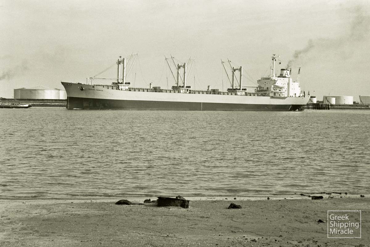 The Freedom-type cargo ship GEORGIOS PARAVALOS, 14,937 dwt, built in November 1969 by Ishikawajima-Harima Heavy Industries Co. Ltd., Tokyo, Japan for Seatide Navigation Co., S.A. under Greek flag.