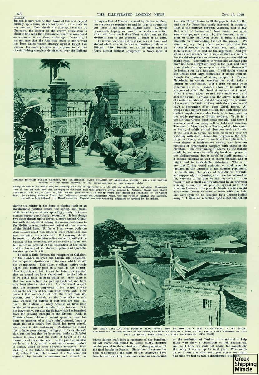 Despite Greece’s neutral stance during the first year of the war, the informal engagement of Greek shipping was evident ever since the declaration of the war in September 1939. This resulted in the loss of about 90 Greek steamers due to acts of war, even before Greece gave its resounding answer to Mussolini’s ultimatum.