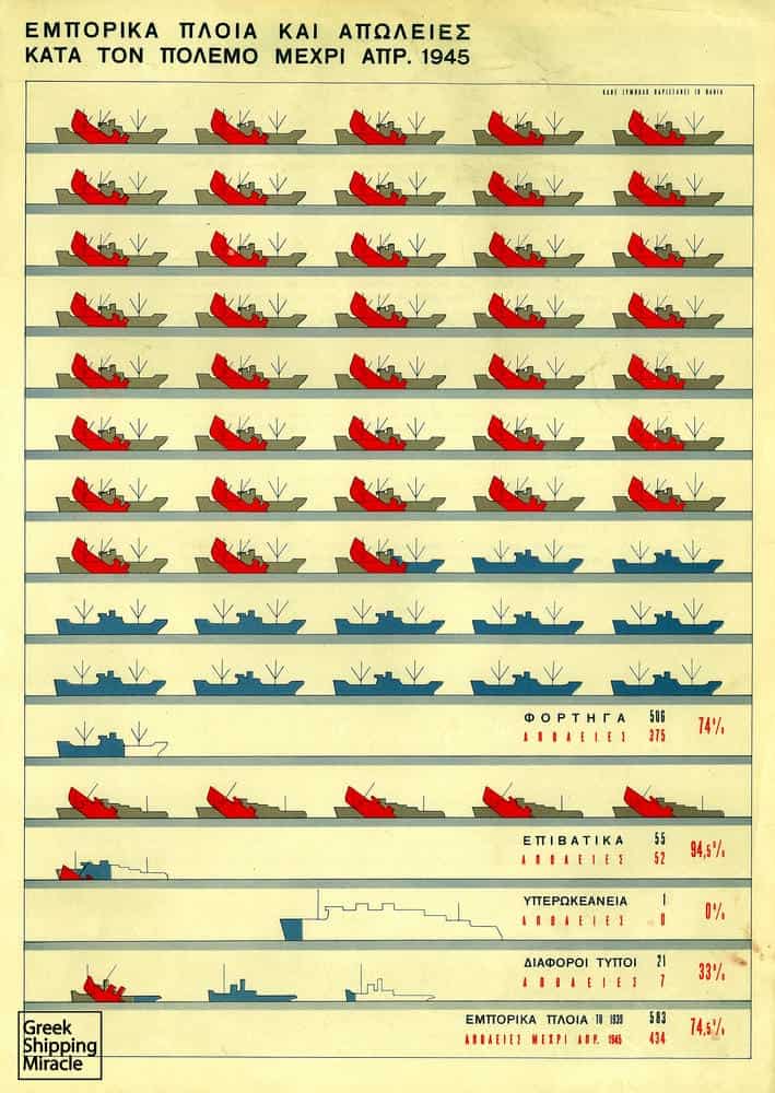 At the end of the War, the Greek-flagged fleet had been reduced to a mere 150 ships, less than those that had survived WWI. The task of reconstruction was now even harder because of the Greek government’s agreement to charter the entire fleet to the British authorities at a relatively low hire. This had deprived the industry of sufficient funds to rebuild the fleet in post-war years.