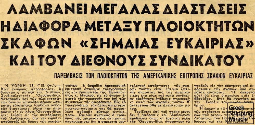 Meanwhile, Greek shipowners’ achievements and their powerful presence within the global seaborne trade put on focus certain aspects concerning their business growth. In 1953, the US government accused distinguished shipowners such as Stavros Niarchos, Aristotle Onassis and others for illegal buying and management of US ships. The issue made headlines in the US despite the fact that the ships had been acquired following the opinion of leading US law firms and therefore had the approval of the US Maritime Commission. After careful consideration, it was finally decided by the interested parties that any complicated and lengthy legal procedures would ultimately cost more than an expensive compromise. Consequently, an agreement was reached, according to which several of the ships were handed back to the US government, with fines being paid at the same time.