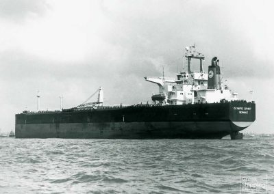 The tanker OLYMPIC SPIRIT, 96,668 dwt, built in March 1990 by Sumitomo Heavy Industries, Ltd., Yokosuka Shipyard, Yokosuka, Japan, for Montego Transportation Co. under Greek flag.