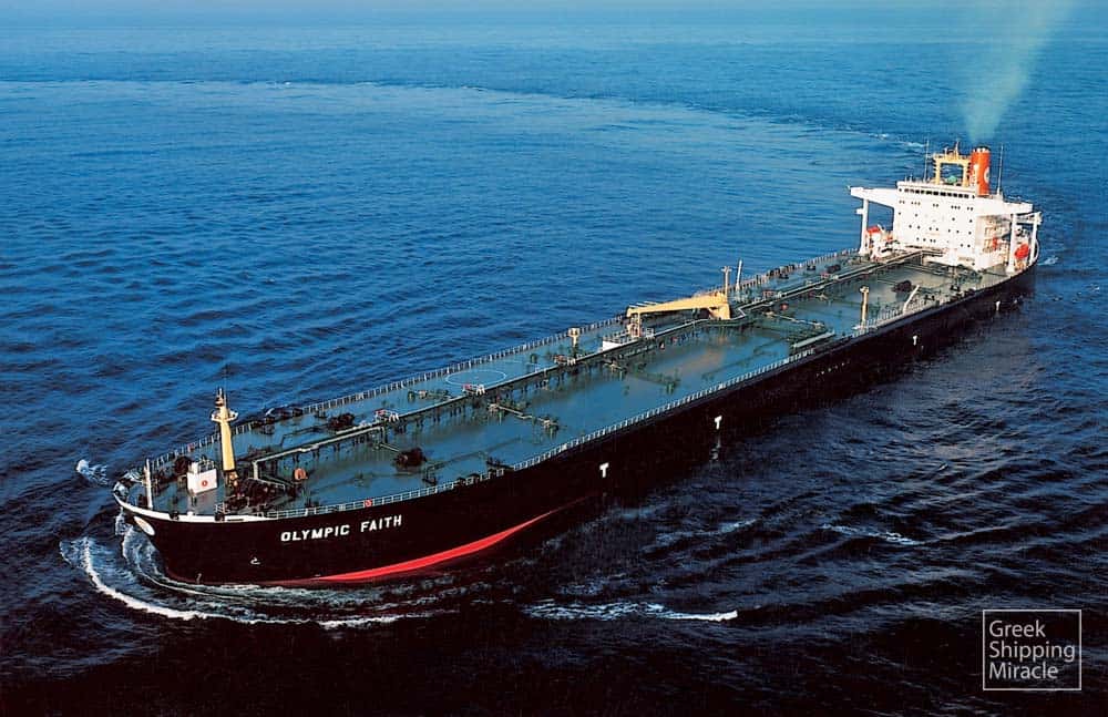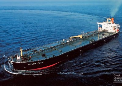 The crude oil tanker OLYMPIC FAITH, 147,457 dwt, built in March 1991 by Ishikawajima-Harima Heavy Industries Co. Ltd., Chita, Japan, for Calera Panama S.A. under Greek flag.