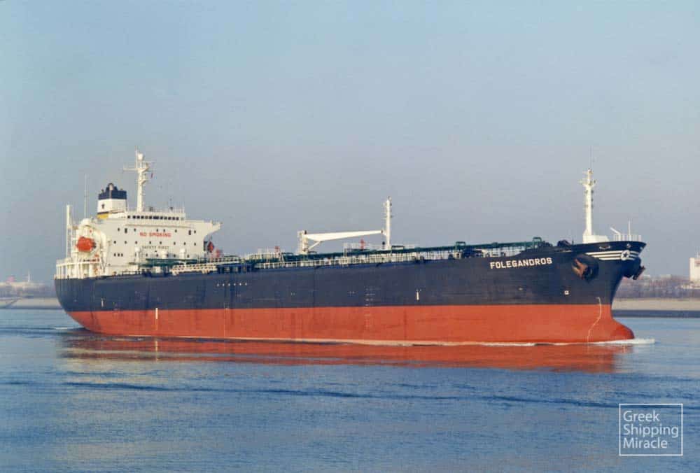 The products tanker FOLEGANDROS, 45,425 dwt, built in July 1992 by Hitachi Zosen Corp., Maizuru Works, Maizuru, Japan, for Folegandros Shipping Corporation under Greek flag.