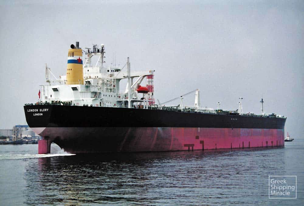 The crude oil tanker LONDON GLORY, 149,834 dwt, built in May 1995 by Mitsui Engineering & Shipbuilding Co. Ltd., Chiba Works, Ichihara, Japan for London & Overseas Freighters Ltd. under British flag.