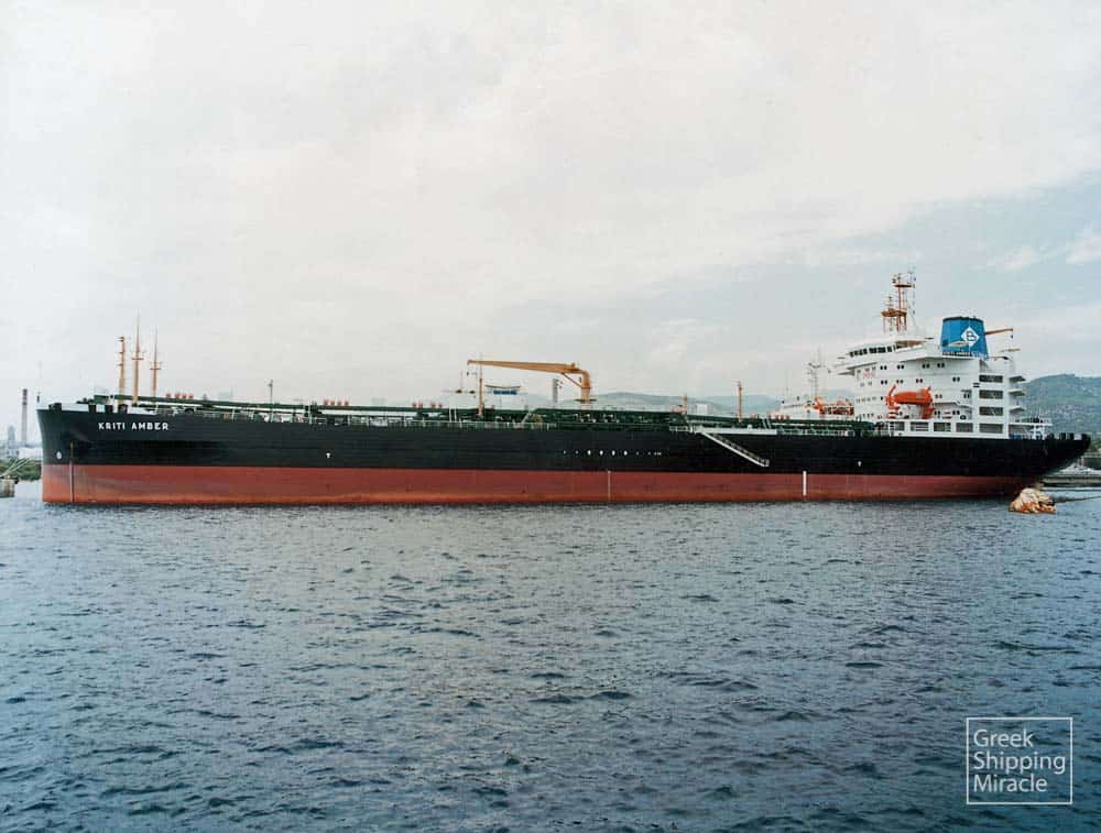 The chemical/products tanker KRITI AMBER, 45,614 dwt, built in July 1995 by DAHK Chernomorskyi Sudnobudivnyi Zavod, Mykolayiv, Ukraine, for Arbyx Amber Shipping S.A. under Greek flag.