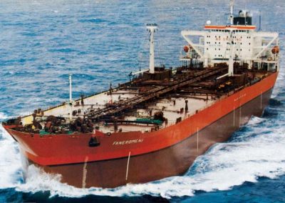 The crude oil tanker FANEROMENI, 89,090 dwt, built in October 1995 by Santierul Naval “2 Mai” Mangalia S.A., Mangalia, Romania. Launched in 1990 as OVIDIU, subsequently renamed J.P.C. LIRA and completed as JUMBO TRADER. Acquired on delivery by Fiery Cross Navigation Co. Ltd. under Cyprus flag.