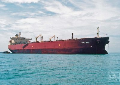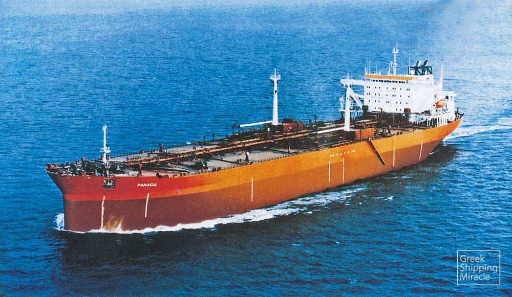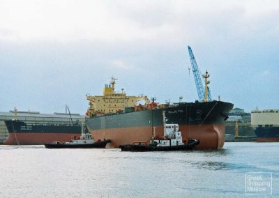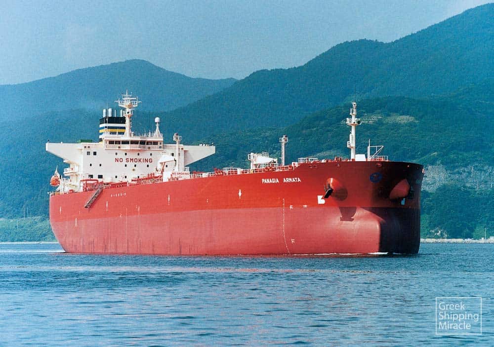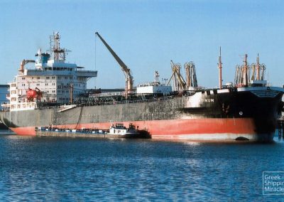 The crude oil tanker PANAGIA, 89,090 dwt, built in February 1996 by Santierul Naval “2 Mai” Mangalia S.A., Mangalia, Romania. Launched in 1987 as MORENI, subsequently renamed J.P.C. KORUNA and completed as SEA GIANT. Acquired on delivery by Virma Navigation Co. Ltd. under Cyprus flag.