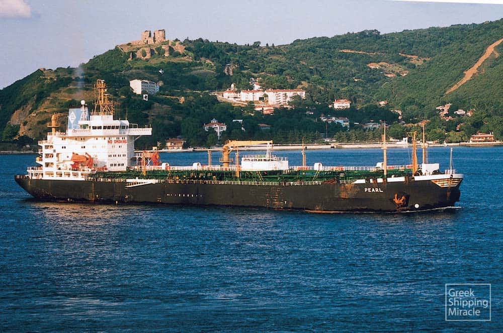 The chemical/products tanker PEARL, 45,449 dwt, built in September 1997 by DAHK Chernomorskyi Sudnobudivnyi Zavod, Mykolayiv, Ukraine, for Arbyx Pearl Shipping S.A. under Greek flag. (C. W. Van Noort collection)