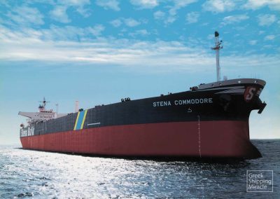 The crude oil tanker NISSOS ANAFI, 106,597 dwt, built in October 1997 by NKK Corporation, Tsu, Japan, for Sea Pearl Enterprises Ltd. under Greek flag. (depicted with subsequent name STENA COMMODORE).