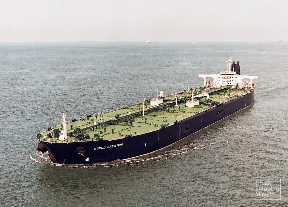 The crude oil tanker WORLD CREATION, 298,324 dwt, built in April 1998 by Daewoo Heavy Industries Ltd., Okpo, South Korea, for Adder Shipping Co. under Greek flag.
