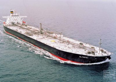 The crude oil tanker OLYMPIC LOYALTY, 303,184 dwt, built in March 1993 by Sumitomo Heavy Industries Ltd., Yokosuka, Japan, for Obelisk Navigation S.A. under Greek flag.
