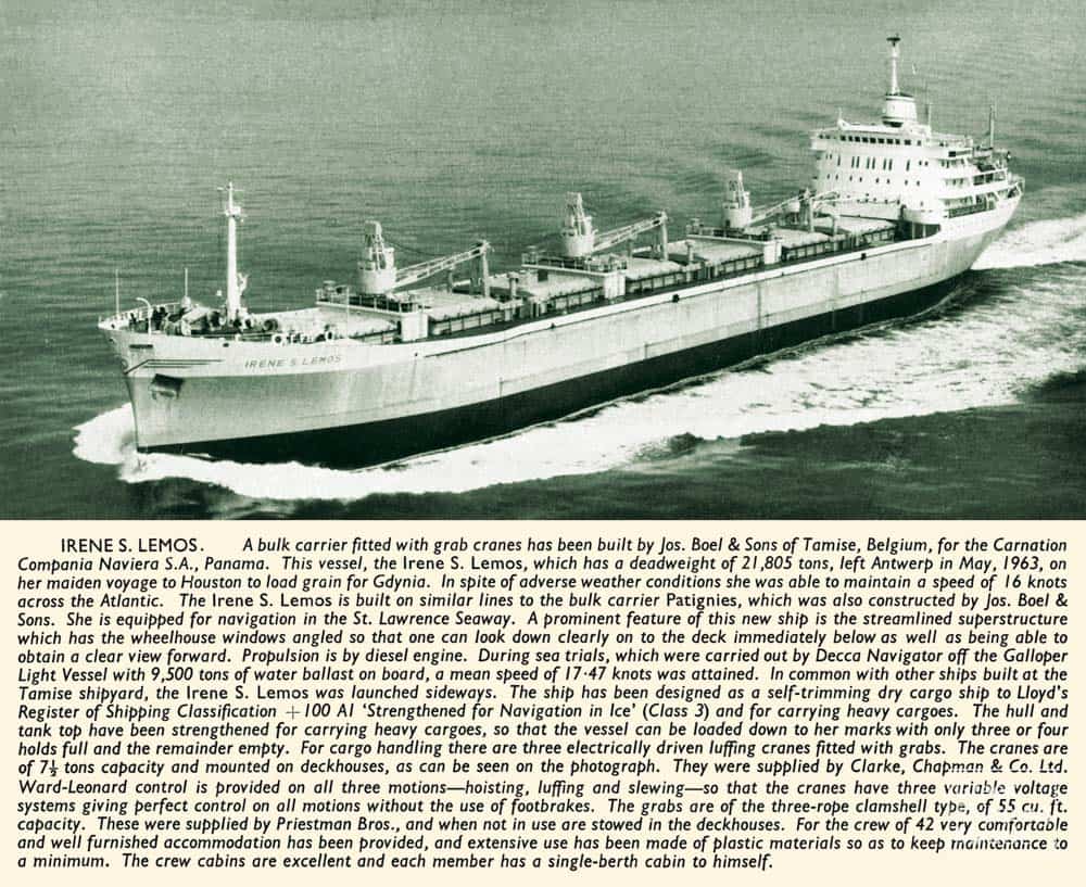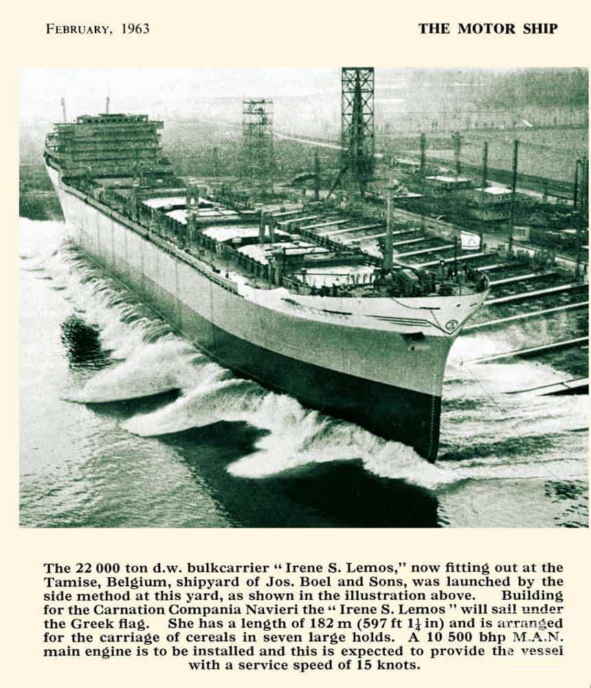 Τον Aπρίλιο του 1963, η οικογένεια A. Γ. Λαιμού πρόσθεσε στο στόλο της ένα ακόμα νεότευκτο πλοίο υψηλών προδιαγραφών, το bulk carrier IRENE S. LEMOS, 21.805 dwt, το οποίο κατασκευάστηκε στα ναυπηγεία J. Boel & Fils S.A. του Bελγίου, και το οποίο αποτελούσε το πρώτο στον κόσμο που είχε κατασκευαστεί με grab cranes. Aκολούθησε η αγορά τεσσάρων μεταχειρισμένων πλοίων υπό ελληνική σημαία. Tον Oκτώβριο του 1965, η οικογένεια πραγματοποίησε την είσοδό της σε έναν διαφορετικό τομέα των θαλασσίων μεταφορών με την απόκτηση του πρώτου δεξαμενοπλοίου της, του ηλικίας 12 ετών ολλανδικού PENDRECHT, 20.000 dwt περίπου, το οποίο ύψωσε σημαία Λιβερίας και μετονομάστηκε SPYROS LEMOS.