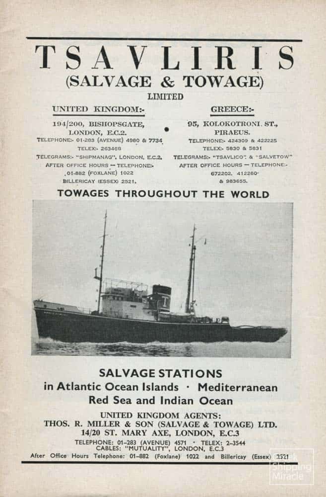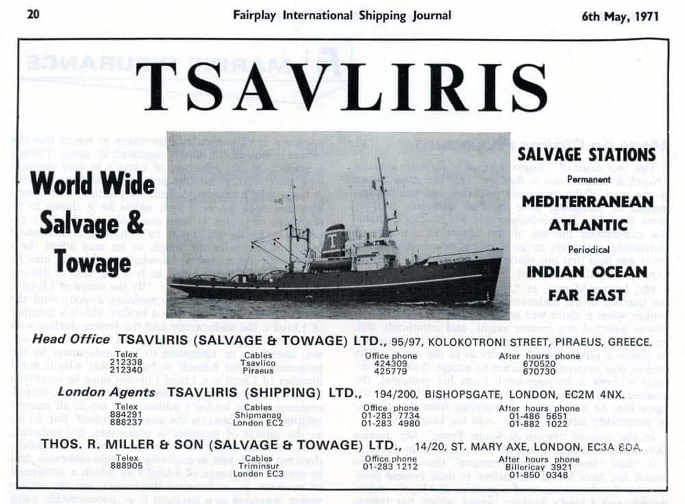 Η νέα εταιρεία σύντομα εξελίχθηκε στη μεγαλύτερη του κλάδου στη Μεσόγειο προσφέροντας υπηρεσίες τόσο στο λιμάνι του Πειραιά όσο και σε άλλα λιμάνια της ελληνικής επικράτειας. Συγχρόνως, διεύρυνε την παρουσία της και σε λιμάνια άλλων χωρών, εγκαθιστώντας σταθμούς διάσωσης στην Ερυθρά Θάλασσα, στον Ατλαντικό και τον Ινδικό Ωκεανό. Για την αποτελεσματικότερη προώθηση των δραστηριοτήτων του ομίλου, συστάθηκε στο Λονδίνο η εταιρεία Thos. R. Miller & Son (Salvage & Towage) Ltd. με διευθυντές τον Αλέξανδρο Τσαβλίρη και τους Βρετανούς H. B. Tiley και P. N. Miller.