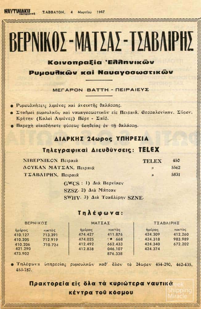 Όσον αφορά το καθαρά επιχειρηματικό πεδίο, οι παραλαβές των δύο πρώτων νεότευκτων του ομίλου το 1971 είχαν συμπέσει με την πώληση των δύο τελευταίων παλαιών ποντοπόρων φορτηγών του στόλου του Αλέξανδρου Γ. Τσαβλίρη. Από την άλλη πλευρά, η επιχείρηση των ρυμουλκών είχε περιοριστεί στη λειτουργία μόλις 11 πλοίων. Με αυτά τα δεδομένα, οι γιοί του Τσαβλίρη χάραξαν τη δική τους πορεία, στις αρχές μιας δεκαετίας που χαρακτηρίστηκε από την εκρηκτική ανάπτυξη του παγκόσμιου στόλου και τις αθρόες ναυπηγήσεις με ολοένα αυξανόμενες τάσεις γιγαντισμού των πλοίων. Ωστόσο, οι δύο πετρελαϊκές κρίσεις διαφοροποίησαν ριζικά το ναυτιλιακό περιβάλλον οδηγώντας στις αρχές της επόμενης δεκαετίας στη χειρότερη ύφεση που είχε αντιμετωπίσει ο κλάδος από τα τέλη του Β’ Παγκοσμίου Πολέμου.