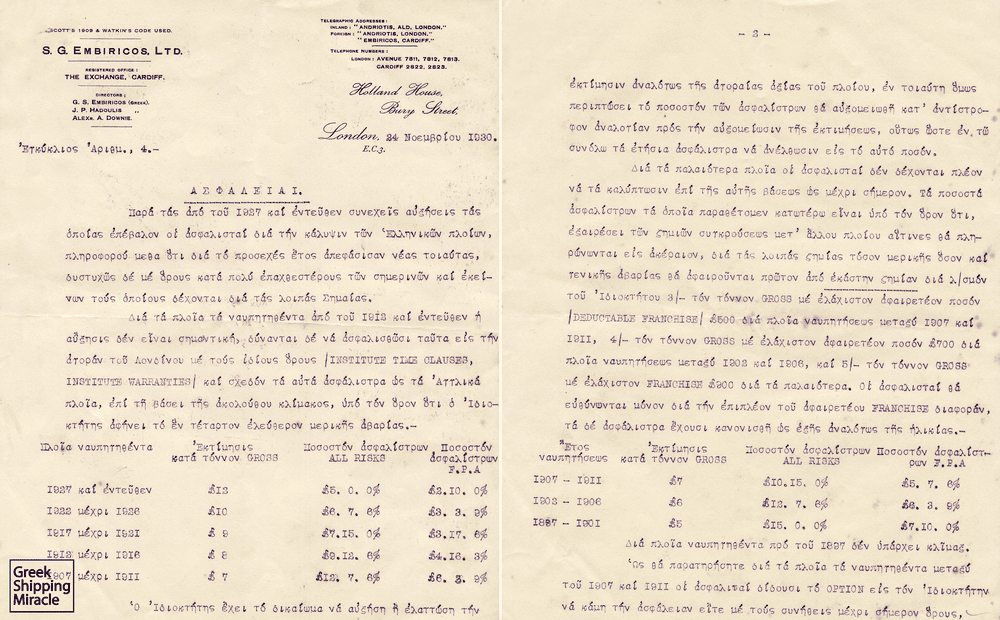 Η συνεχής αύξηση των μεγεθών της ελληνικής ναυτιλίας και η επιτυχής διείσδυσή της σε νέες αγορές προκάλεσε ανησυχία στους άλλους ανταγωνιστές. Οι βρετανικές ασφαλιστικές εταιρείες αποφάσισαν να επιβάλλουν αυξημένα ασφάλιστρα στα ελληνικά πλοία που μετέφεραν σιτοφορτία από την Αργεντινή. Μετά από αρκετές προσπάθειες το εμπόδιο ξεπεράστηκε, χάρη στη συμβολή του εφοπλιστή Μανώλη Ηλ. Κουλουκουντή, συνιδρυτή της εταιρείας Ρεθύμνη & Κουλουκουντή, που κατείχε σημαντικές διασυνδέσεις στη ναυτασφαλιστική αγορά του Λονδίνου. Την ίδια περίοδο, οι Έλληνες στράφηκαν για μια ακόμα φορά μαζικά στα ναυπηγεία του Ηνωμένου Βασιλείου. Η παράδοση νεότευκτων πλοίων σε μεγάλους ελληνικούς ναυτιλιακούς οίκους μεταξύ των ετών 1927 και 1930 είχε ως αποτέλεσμα τη βελτίωση του μέσου όρου ηλικίας του ελληνικού εμπορικού στόλου.