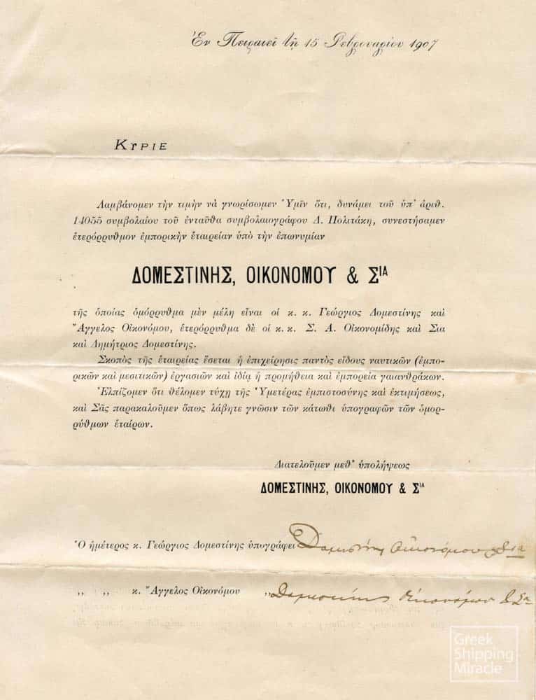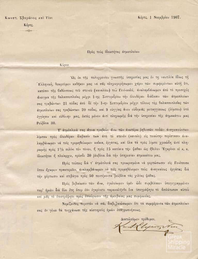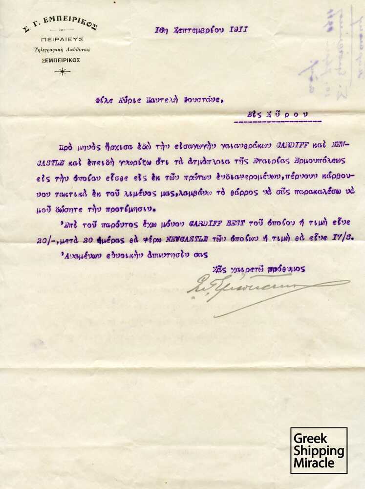 Κατά την πρώτη δεκαετία του αιώνα, οι Έλληνες κατάφεραν να δημιουργήσουν μία ισχυρή παρουσία στο παγκόσμιο θαλάσσιο εμπόριο. Επιχείρησαν την κατασκευή 55 ατμοπλοίων και αγόρασαν άλλα 250 μεταχειρισμένα. Στο τέλος του 1911, ο ελληνόκτητος στόλος περιλάμβανε περίπου 350 ατμόπλοια.