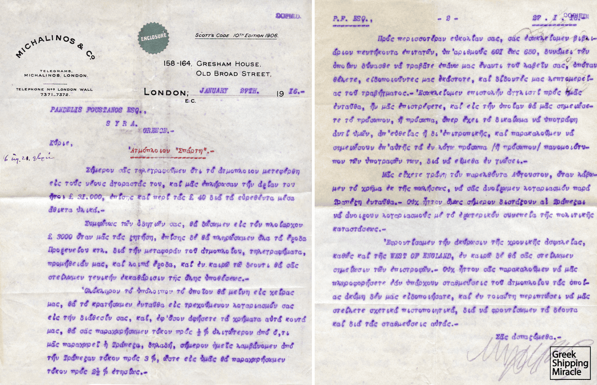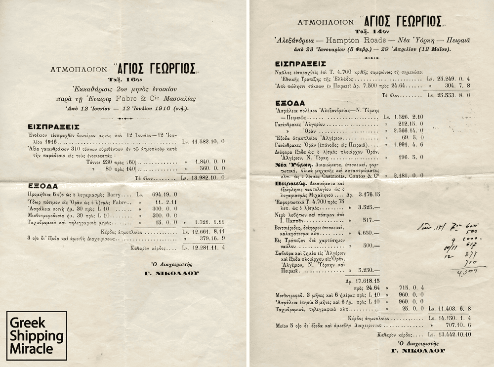 Κατά την περίοδο της ελληνικής ουδετερότητας κατά τα έτη 1915 και 1916, αρκετοί Έλληνες εφοπλιστές είχαν αποκομίσει εξαιρετικά κέρδη από τις πωλήσεις, τις ασφαλιστικές αποζημιώσεις και την εκμετάλλευση των ατμοπλοίων τους στη διάρκεια του πολέμου. Το γεγονός αυτό έδινε τη δυνατότητα της σταδιακής ανασυγκρότησης του στόλου και την επάνοδο των Ελλήνων στις διεθνείς αγορές.