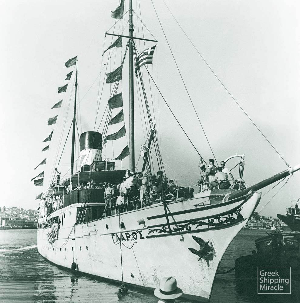 - Το ΑΥΡΑ, κατασκευής 1904 (εικονίζεται με το μετέπειτα όνομα ΕΛΕΝΑ). ΙΣΤΟΡΙΚΟ Κατασκευάστηκε ως θαλαμηγός το 1904 στα βρετανικά ναυπηγεία Scott's Shipbuilding & Engineering Co. Ltd., Greenock. Αρχικό όνομα GRIANAIG, βρετανική σημαία. Το 1914 επιτάχθηκε από το Βρετανικό Ναυαρχείο και χρησιμοποιήθηκε ως βοηθητικό περιπολικό, ενώ το 1916 χρησιμοποιήθηκε ως ανθυποβρυχιακό και αργότερα ως πλωτό νοσοκομείο. Το 1919 επιστράφηκε στον πλοιοκτήτη του Earl Dunraven. Στα μέσα της δεκαετίας του 1920 περιήλθε στον A.J. Drexel, Jr. και μετονομάστηκε ALOMA. Ακολούθως περιήλθε στον Aymar Johnson, μετονομάστηκε ENCHANTRESS και ύψωσε σημαία ΗΠΑ. Το 1937 πουλήθηκε στον Moss S. Myers και μετονομάστηκε LADY SHAHRAZAD υπό βρετανική σημαία. Τον Σεπτέμβριο του 1939 επιτάχθηκε από το Βρετανικό Ναυαρχείο και χρησιμοποιήθηκε ως ανθυποβρυχιακό περιπολικό. Το 1946 πουλήθηκε στην Compania Maritima Corthi S.A., μετασκευάστηκε σε επιβατηγό, και μετονομάστηκε ΑΝΤΟΝΙΟ υπό σημαία Παναμά. Το 1948 περιήλθε στον Γιαννούλη Ζ. Γούναρη και μετονομάστηκε ΑΥΡΑ υπό ελληνική σημαία. Το 1950 πουλήθηκε στον Λάζαρο Σ. Λαγά και το 1951 μετονομάστηκε ΕΛΕΝΑ. Το 1959 πουλήθηκε για διάλυση στην Ελλάδα. (33/144)