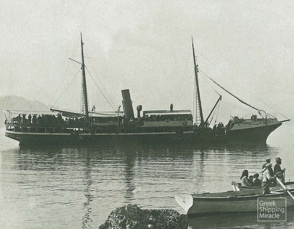 - Το ΛΟΥΤΣΙΝΤΑ, κατασκευής 1899. ΙΣΤΟΡΙΚΟ Kατασκευάστηκε το 1899 ως θαλαμηγός στα βρετανικά ναυπηγεία Ramage & Ferguson Ltd., Leith για τους A. R. & J. M. Sladen. Αρχικό όνομα SHEMARA, βρετανική σημαία. Το 1900 πουλήθηκε στην κυβέρνηση της Νέας Νότιας Ουαλίας, μετονομάστηκε VICTORIA και ύψωσε σημαία Αυστραλίας. Το 1905 πουλήθηκε στην Camper & Nicholson Ltd., μετονομάστηκε SHEMARA και ύψωσε βρετανική σημαία. Από το 1914 έως το 1919 επιτάχθηκε από το Βρετανικό Ναυαρχείο και χρησιμοποιήθηκε ως περιπολικό. Το 1933 πουλήθηκε στον Sir Charles D. Burney και μετονομάστηκε LUCINDA. Το 1946 αγοράστηκε από την Lucinda Cia. Panamena de Navegacion S.A. και ύψωσε σημαία Παναμά. Το 1947 περιήλθε στους Μικέ Ν. Φιλίνη, Νικόλαο Μ. Φιλίνη, Πέτρο Παραμυθιώτη και Γεώργιο Βουγιουκλή, μετασκευάστηκε σε επιβατηγό και ύψωσε ελληνική σημαία διατηρώντας το ίδιο όνομα. Το 1952 πουλήθηκε για διάλυση στην Ιταλία. (18/144)