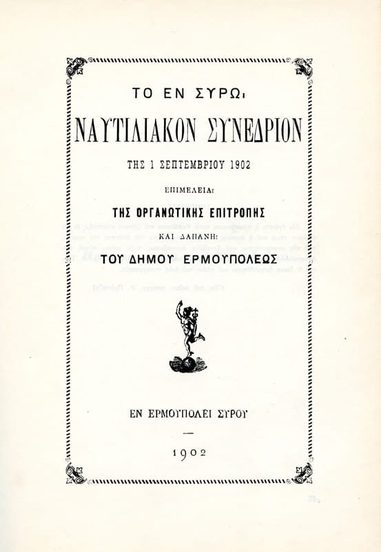 Το Σεπτέμβριο του 1902 πραγματοποιήθηκε στην Ερμούπολη της Σύρου το πρώτο ναυτικό συνέδριο. Μεταξύ των σημαντικών θεμάτων συζήτησης ήταν η ίδρυση ειδικών σχολών για την επιμόρφωση εμποροπλοιάρχων και μηχανικών, η θέσπιση νόμου περί ναυτικής υποθήκης, η ίδρυση Ναυτικής Τράπεζας, η ναυτική ασφάλεια και η κατασκευή ατμόπλοιων στην Ελλάδα με την ενίσχυση του κράτους. Περισσότερα