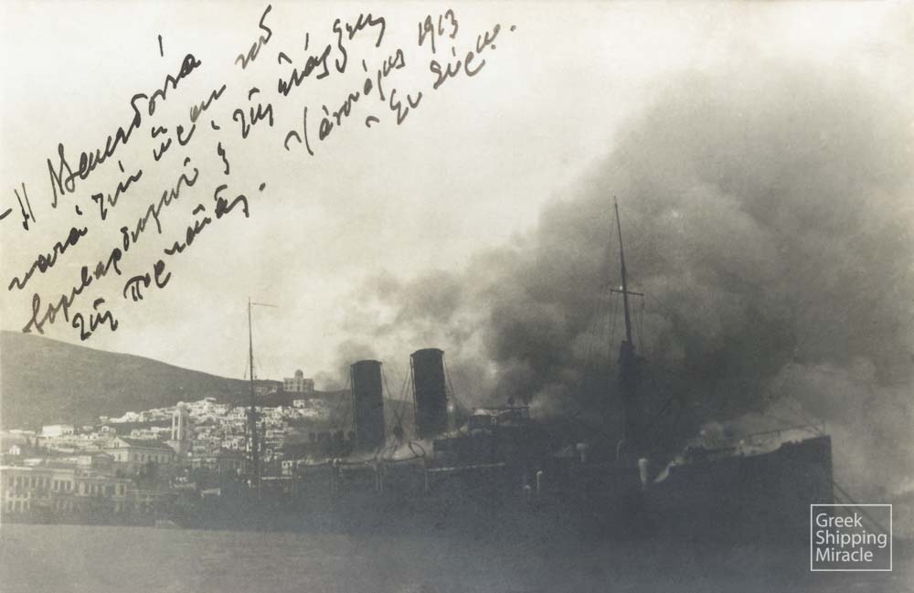 But this initiative was ill fated. At the end of 1908, the company of Moraitis, which was facing an adverse economic climate and a reduction in immigration at the time, went bankrupt and management was transferred to its creditors. The restructured company also took over the second ship, the ATHINAI, but that scheme too proved to be short lived. Thus, the only Greek company that maintained a presence in international passenger shipping was the one of the Embiricos Brothers, the sons of Andreas Embiricos. As in the case of Moraitis, the Embiricos family hailed from Andros and was well established in cargo shipping. The National Steam Navigation Company of Greece, as the company was called, dominated the sector until the mid-1930s, when it run into financial trouble due to the failure of the Greek state to meet its contractual obligations towards it. This eventually led to the sale of National Steam Navigation’s assets and its dissolution.