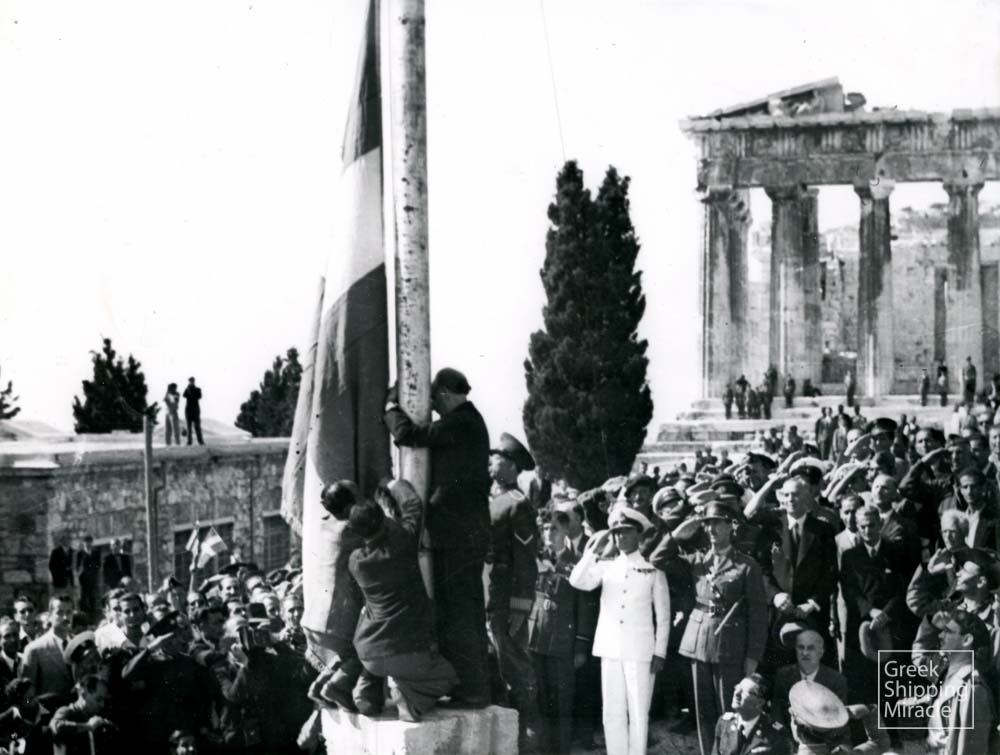 On 27 April 1941, the German swastika was raised on the Acropolis, the symbol of Athens, formalising the occupation of the Axis powers in Greece. However, no matter how the country’s conquerors tried, they never succeeded in imposing the total lowering of the Greek flag. The Greek seafarers did not allow at any point any other flag but the Greek to be raised on Greek registered vessels, the latter being official Greek territory.