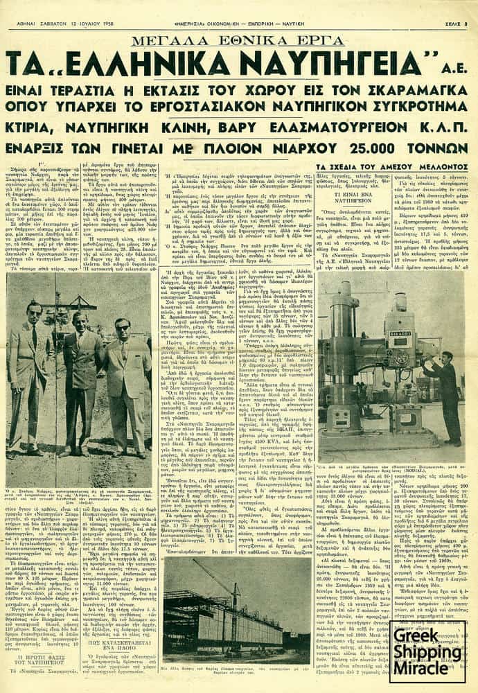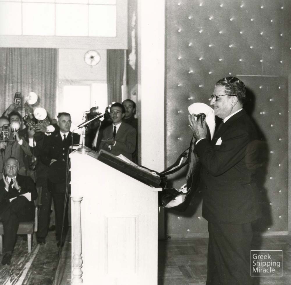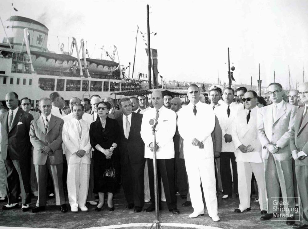 A few months later, in December 1956, Constantine Karamanlis met Greek shipowners in New York, inviting them to have their ships placed under the Greek flag. At the same time, the government was demonstrating its commitment to upgrade the infrastructure of Piraeus through major works in the port.