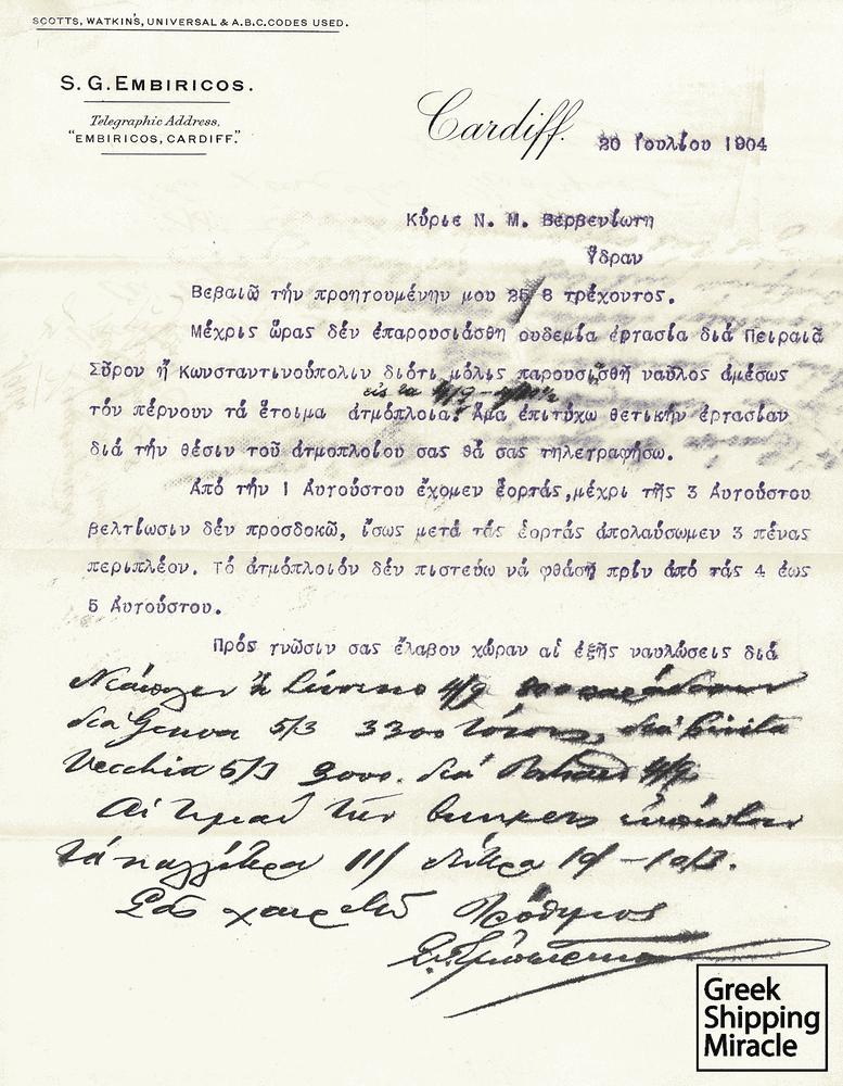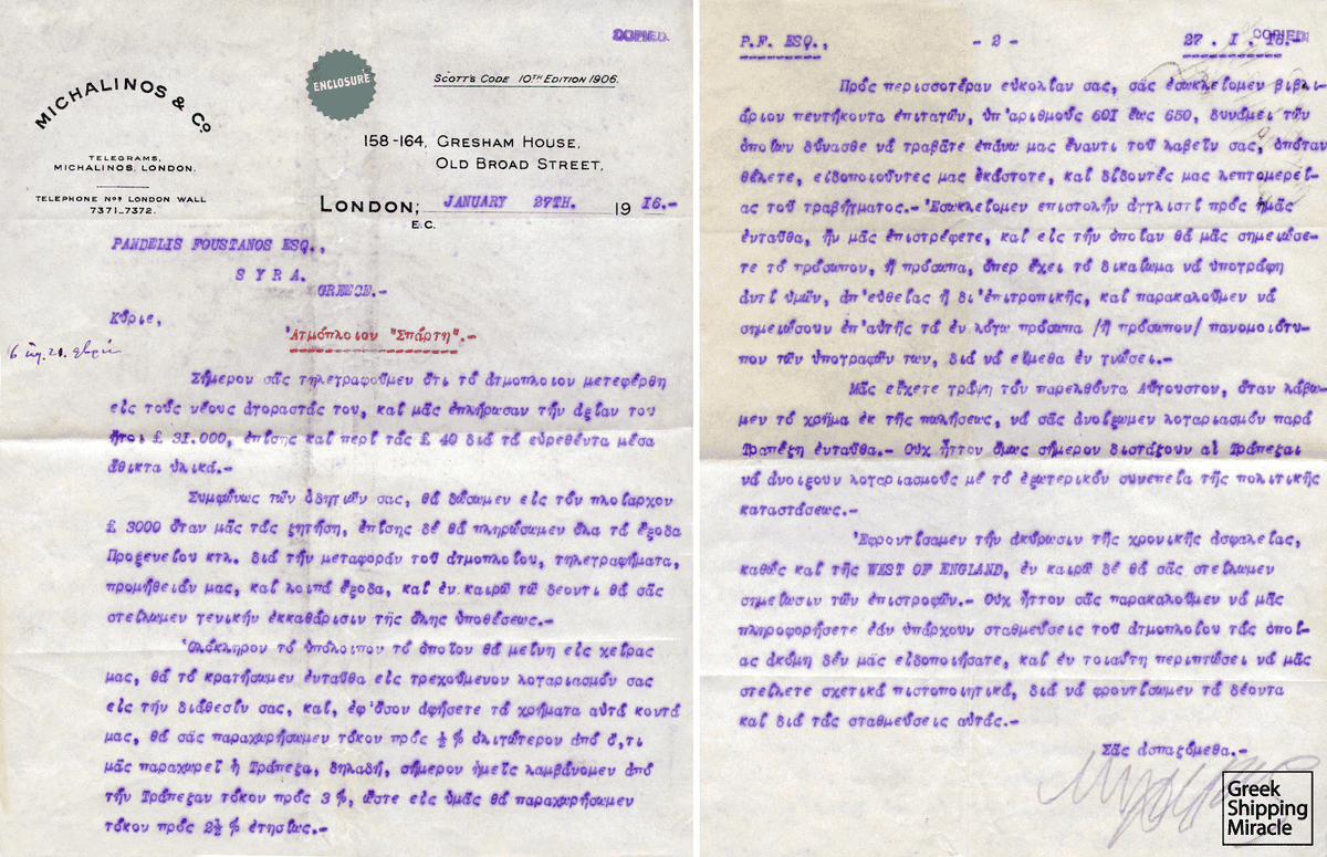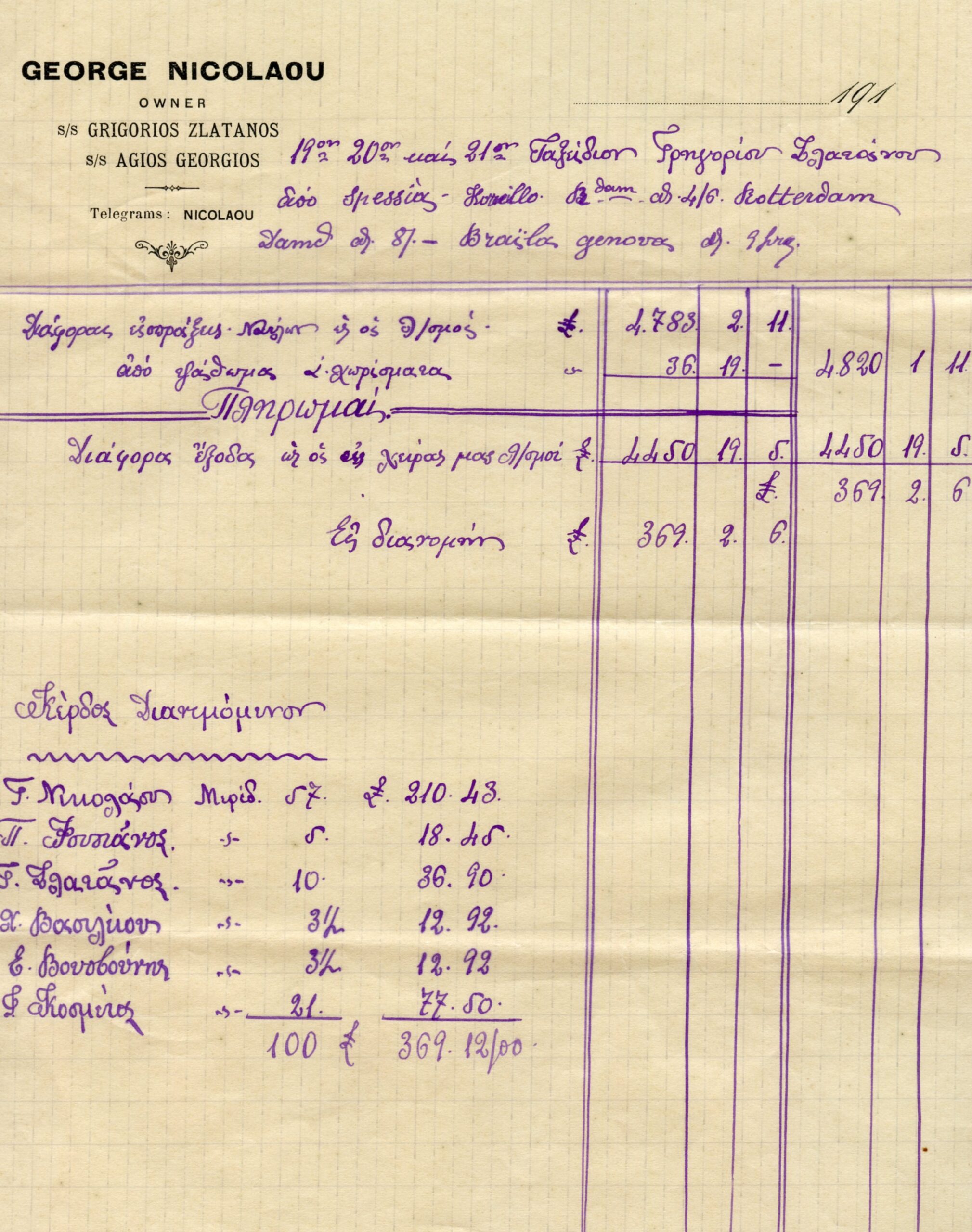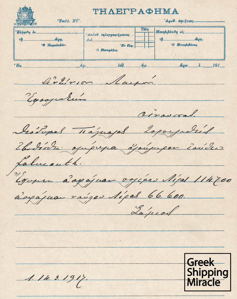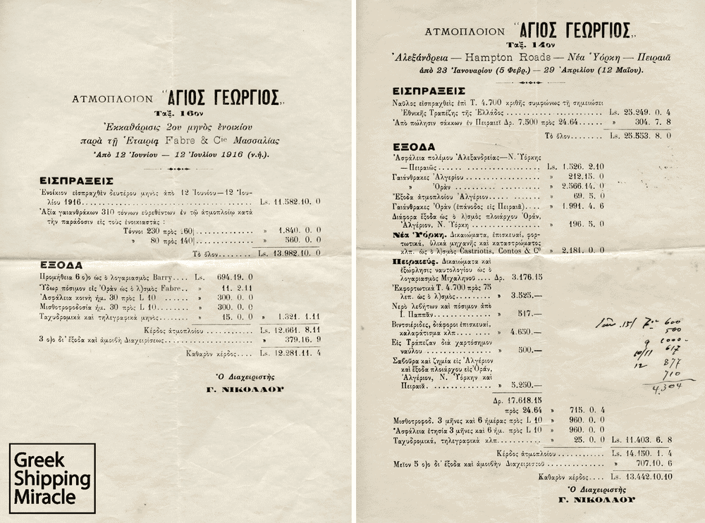 Despite the above, many Greek shipowners made extraordinary profits during the War from sales, insurance claims and the operation of their steamers, especially during the years of neutrality in 1915-1916. This was sufficient to enable them to invest again in steamships, whenever they felt that they should return competitively to the market.