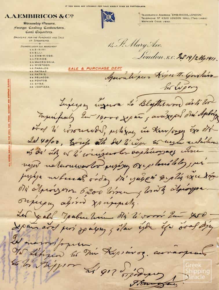 Κατά την πρώτη δεκαετία του αιώνα, οι Έλληνες κατάφεραν να δημιουργήσουν μία ισχυρή παρουσία στο παγκόσμιο θαλάσσιο εμπόριο. Επιχείρησαν την κατασκευή 55 ατμοπλοίων και αγόρασαν άλλα 250 μεταχειρισμένα. Στο τέλος του 1911, ο ελληνόκτητος στόλος περιλάμβανε περίπου 350 ατμόπλοια.
